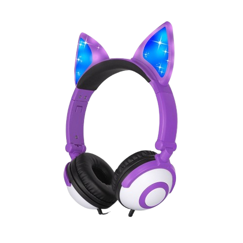 - Long battery life (~55 h), LED lighting, over-ear design, wireless with mic ,compact and practical for school or travel.